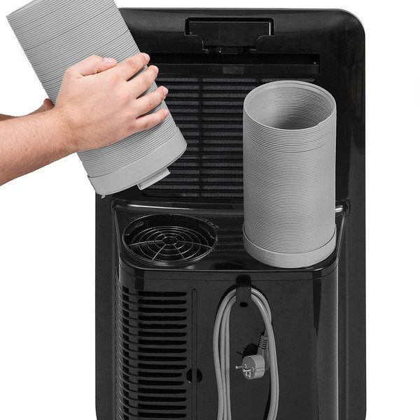 Mobilny klimatyzator PAC 3550 PRO o mocy chłodzenia 3,5 kW przyjemnie i szybko schładza pomieszczenia o powierzchni do 45 m². Trzystopniowa wentylacja i regulowane ustawienie lamelek zapewnia równomierny rozkład niskiej temperatury w całym pomieszczeniu, oczyszczając i osuszając jednocześnie powietrze i gwarantując poczucie komfortu. Uzyskanie tych szczególnych zalet eksploatacyjnych możliwe jest dzięki zastosowaniu w modelu PAC 3550 PRO specjalnego system dwukanałowy, dzięki któremu urządzenie spełnia wymagania klasy energetycznej A i osiąga bardzo wysoką wydajność przy niskich kosztach eksploatacji! W związku ze swoją budową, klimatyzatory z systemem jednokanałowym wytwarzają podciśnienie w pomieszczeniu, co powoduje ciągłe pobieranie powietrza zewnętrznego. Zmniejsza to skuteczność chłodzenia i powoduje pojawianie się nieprzyjemnego ciągu powietrza (drętwienie z zimna). Model PAC 3550 PRO wykorzystuje system dwóch niezależnych kanałów powietrznych o średnicach tylko 15 cm, przystosowanych do łatwego montażu do okna. Dzięki zastosowaniu tego systemu, w pomieszczeniu nie dochodzi do powstawania podciśnienia i zasysania gorącego powietrza z zewnątrz. Jednocześnie pomieszczenie jest ciągle zasilane w świeże powietrze. Dzięki temu, urządzenia wykorzystujący system dwukanałowy takie jak PAC 3550 PRO charakteryzują się sprawnością wyższą o maks. 25%.