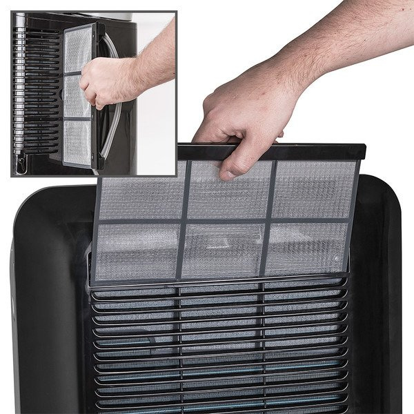 Funkcja programatora czasowego Timer umożliwia włączenie i wyłączenie urządzenia o planowanych godzinach eksploatacji, np. wieczorem. Automatyczny tryb pracy jest sterowany z wykorzystaniem czujnika. Na podstawie jego sygnału klimatyzator rozpoznaje potrzebę schłodzenia lub wentylacji pomieszczenia. Konieczność opróżnienia zbiornika kondensatu jest sygnalizowana za pośrednictwem diody LED. Klimatyzator PAC 3550 PRO ma również możliwość regulacji temperatury i prędkości wentylatora. W celu ułatwienia szybkiej zmiany miejsca eksploatacji, model PAC 3550 PRO jest wyposażony w rolki i zintegrowane, zagłębione uchwyty. Dzięki zastosowaniu uchwytu, pilot zdalnego sterowania jest zawsze łatwo dostępny.