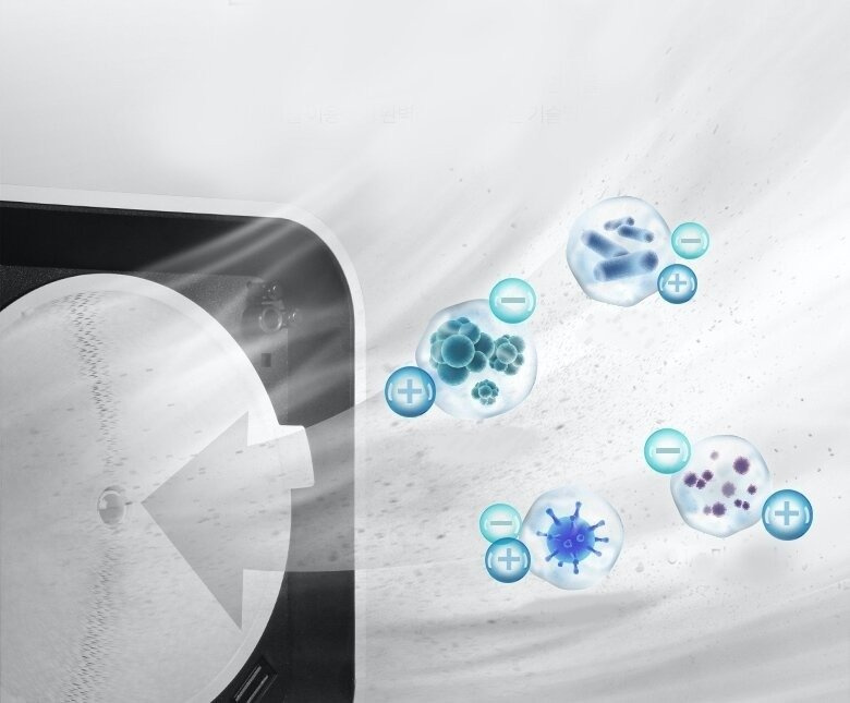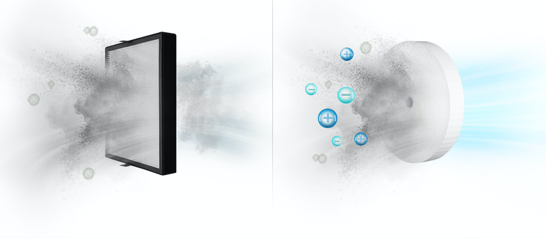 - Filtr e2f marki Clair jest rodzajem filtra elektrostatycznego. W przeciwieństwie do filtra Hepa, który filtruje powietrze i zatrzymuje drobne cząstki przez pewnego rodzaju siatkę, filtr e2f wyłapuje najdrobniejsze cząstki o przeciwnych ładunkach magnetycznych, jak w magnesie. Filtr e2f posiada biegunowość + i - po obu stronach, dlatego im mniejsze cząstki, tym lepiej są wychwytywane przez filtr e2f. Ponieważ filtr e2f wykorzystuje zjawisko polaryzacji, znakomicie radzi sobie z zanieczyszczeniami takimi jak Lotne Związki Organiczne (VOC), bakterie, drobnoustroje i najdrobniejsze cząstki o rozmiarze mniejszym niż PM 0,1. (Drobny pył, gdy przechodzi przez filtr jest zagęszczany przez indukcję elektryczności statycznej. )