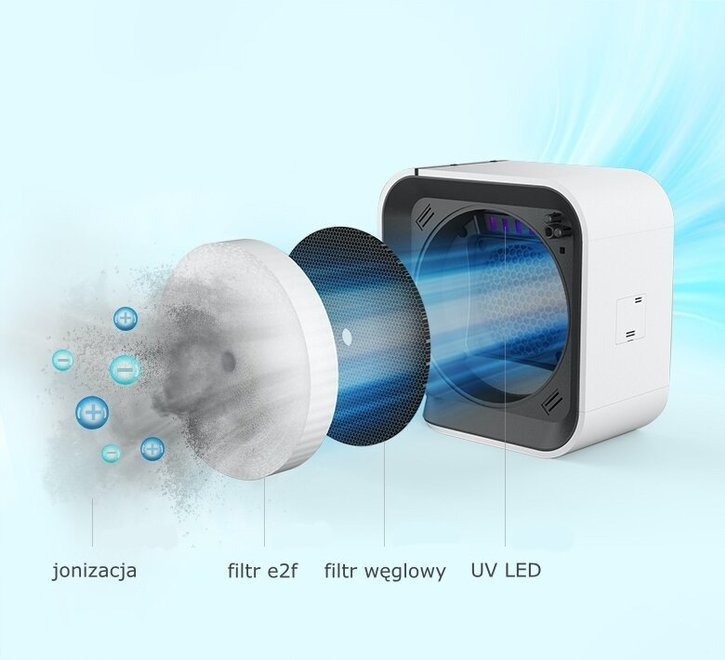 - Jonizacja. Wstępna sterylizacja zanieczyszczeń, poprawa wydajności filtra e2f.