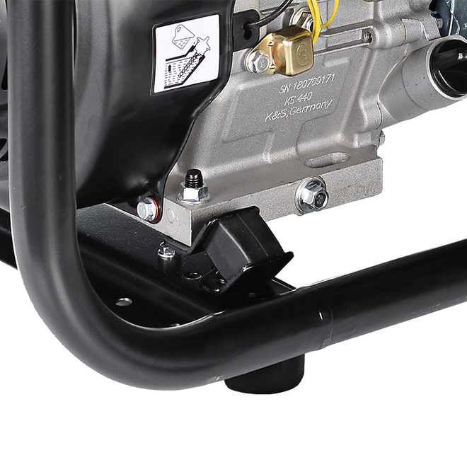Generatory «Könner & Söhnen» wyposażone są w stalowy nadwymiarowy zbiornik paliwa, co wydłuża czas pracy generatora bez tankowania. Na zbiorniku znajduje się wskaźnik poziomu paliwa dla wygody użytkowania.