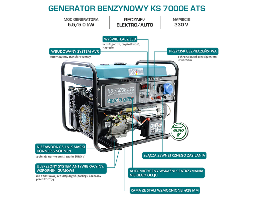 • Agregat prądotwórczy Könner & Söhnen KS 7000E ATS generator benzynowo-gazowy