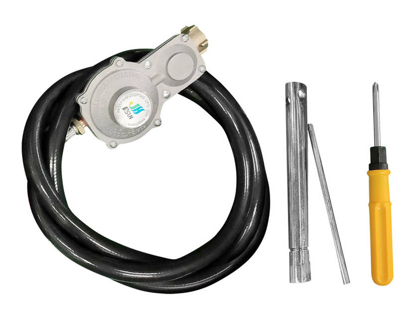 - Dodatkowy reduktor na wężu, który zwiększa niezawodność łącza gazowego, obniża poziom ciśnienia i eliminuje możliwość przeciążenia przyłącza gazu. Wszystko, co musisz zrobić, to podłączyć generator do butli i uruchomić silnik.