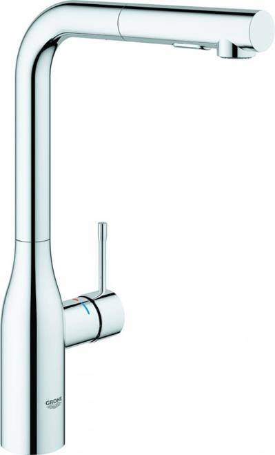 Essence Jednouchwytowa bateria kuchenna 1/2" montaż jednootworowy głowica ceramiczna 28 mm z GROHE SilkMove zintegrowany ogranicznik temperatury powłoka chromowa z GROHE StarLight regulowany ogranicznik strumienia przepływu obrotowa wylewka kąt obrotu 360° wyciągana wylewka z przełącznikiem strumienia standard/prysznic SpeedClean system przeciw osadom wapiennym automatyczne cofanie zintegrowany zawór zwrotny przełącznik strumienia automatyczne przełączanie na perlator giętkie węże przyłączeniowe system szybkiego montażu zabezpieczenie przed przepływem zwrotnym