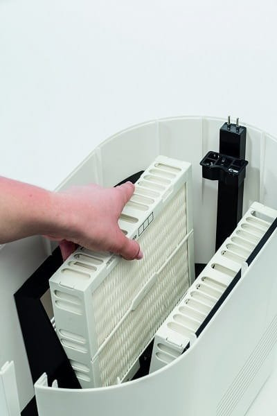Kojący zapach. Mira ma też pojemnik na olejki eteryczne lub zapachowe, dzięki którym, w zależności od rodzaju olejku, nawilżone powietrze będzie pięknie pachniało i będzie wzbogacone o dodatkowe, korzystne dla zdrowia związki uzyskane z leczniczych roślin. Wystarczą tylko dwie lub trzy krople olejku, by otulić się mgiełką pięknego zapachu. Powietrze oczyszczone z większych cząstek kurzu oraz pyłków. Technologia zasysania powietrza przez dwie maty antybakteryjne powoduje, że część zanieczyszczeń z powietrza zostaje usunięta z powietrza i pozostaje w urządzeniu. W ten sposób nawilżone powietrze odprowadzane do pomieszczenia jest znacznie zdrowsze. Kasetę filtrującą przy intensywnym użytkowaniu, należy wymieniać (w zależności od twardości i rodzaju użytej wody) co 2-3 miesiące. Opcja zapobiegania rozwojowi bakterii i wirusów. Mira posiada na wyposażeniu Clean Cube, czyli kostkę z jonami srebra zapobiegającą rozwojowi bakterii i wirusów. Wykorzystano w niej naturalne, antybakteryjne właściwości srebra. Kostka działa niezależnie od tego, czy nawilżacz jest włączony czy nie; wymaga wymiany raz do roku.