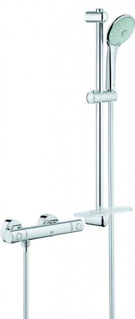 Grohtherm 1000 Cosmopolitan M bateria prysznicowa z termostatem, DN 15 z zestawem prysznicowym elementy składowe: Zestaw termostatyczny Grohtherm 1000 Cosmopolitan M 1/2" -34065002 Zestaw prysznicowy Euphoria 110 Massage , 600 mm (27 231 001) wewnętrzny kanał wodny GROHE DreamSpray powłoka chromowa z GROHE StarLight GROHE SprayDimmer (bezstopniowa redukcja przepływu) półka GROHE EasyReach (27 596 000) SpeedClean system przeciw osadom wapiennym Twistfree system zapobiegający skręcaniu węża prysznicowego min. rekomendowane ciśnienie - 1,0 bar