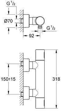 Grohtherm 3000 Cosmopolitan - bateria prysznicowa z termostatem, montaż ścienny 34274000 GROHE