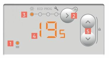- Wielostopniowy przełącznik trybów pracy: Komfort, Eco, Programator, Ustawienia, Timer, Otwarte okno, Stop, Reset