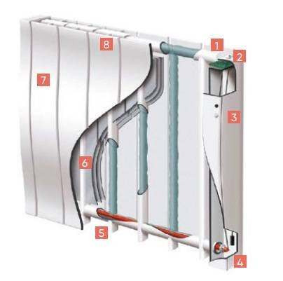 - Aluminium - dzięki dużej powierzchni promieniowania cieplnego, energia zmagazynowana wewnątrz elementu grzewczego jest bardzo szybko oddawana do otoczenia, ciepło rozprzestrzenia się w wielu kierunkach, co gwarantuje szybkie dotarcie do każdej części pomieszczenia.