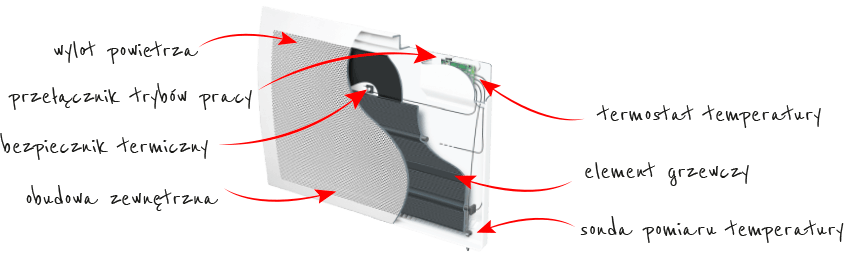 - niskotemperaturowy, płytowy element grzewczy z dyfuzorem aluminiowym,