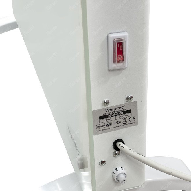 Grzejnik elektryczny Warmtec EGW-2000 o mocy 2000 W jest przeznaczony do błyskawicznego ogrzewania pomieszczeń w mieszkaniu, biurze, lokalu usługowym. Urządzenie posiada przedni panel wykonany z hartowanego szkła. Wraz z grzejnikiem w zestawie znajdują się nóżki. Możliwy jest również montaż grzejnika na ścianie.