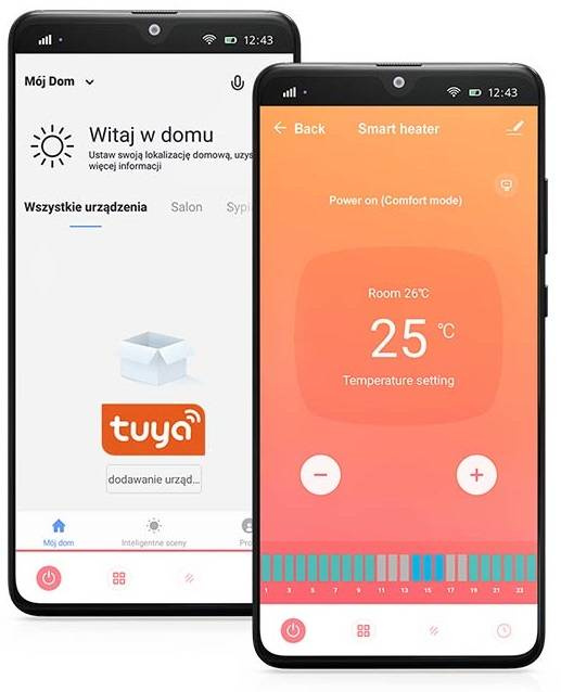 Wystarczy aplikacja na telefon lub tablet i można wygodnie sterować pracą grzejnika. Po zainstalowaniu aplikacji z grzejnikiem łączymy się za pomocą sieci Wi-Fi.