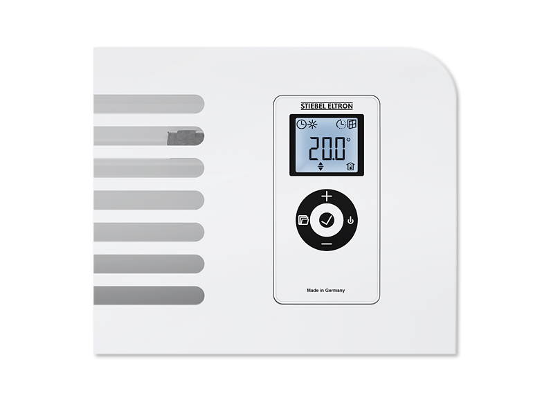 Konwektor wiszący CON 10 Premium w wyjątkowy sposób łączy w sobie funkcjonalność i walory estetyczne. Konwektor CON 10 Premium nie tylko roztacza przyjemne ciepło, lecz dzięki wysokiej jakości stylistyce wzbogaca wnętrze. Sterowany elektronicznie konwektor Premium, wyposażony jest w regulator tygodniowy z wyświetlaczem LCD. Na panelu obsługowym istnieje możliwość nastawy temperatury pokojowej w zakresie + 5°C do + 30°C z dokładności co 0,5°C. Regulator tygodniowy posiada dwa wstępnie zaprogramowane tryby pracy i jeden tryb do programowania indywidualnego. W trybie pracy „komfort” 120 – minutowy programator czasowy, z nastawą w zakresie 10-120 minut krótkiej pracy. Funkcja „Start adaptacyjny” jako funkcja uczenia się w trybie programowania czasowego do zapewnienia temperatury komfortu. Oddzielnie programowalne tryby pracy: komfortowej, obniżenie nocne. Podczas wietrzenia, przy otwartym oknie konwektor przełącza się automatycznie na godzinę na tryb ochrony przed mrozem. Konwektor przy funkcji ochrony przed zamarzaniem utrzymuje temperaturę pomieszczenia na poziomie 7°C. Duży panel obsługowy z czytelnym wyświetlaczem LCD, umieszczony z przodu w górnej części konwektora ułatwia użytkowanie grzejnika. Blokada panelu obsługi przed niezamierzoną ingerencją w ustawienia to kolejna zaleta grzejnika marki Stiebel. Grzejniki konwektorowe Stiebel przeznaczone jako ogrzewanie przejściowe lub dogrzewanie bezpośrednie pomieszczeń w gospodarstwach domowym lub biurach. Ogrzewanie pomieszczeń odbywa się na zasadzie konwekcji powietrza.