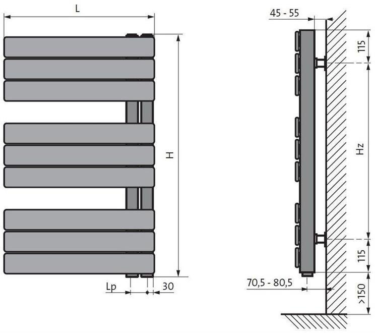 Elato to grzejnki łazienkowe o lekkiej konstrukcji zbudowanej z sekcji rur płaskich o przekroju prostokątnym. Asymetria elementów poziomych zdecydowanie dodaje grzejnikowi funkcjonalności. Cztery króćce przyłączeniowe w kolektorach pionowych umożliwiają zarówno montaż lewo- jak i prawostronny. Zalety produktu: