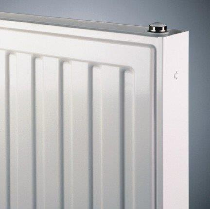 Grzejnik płytowy Purmo Vertical (VR) to wyjątkowa propozycja dla wymagających. Ten pionowy grzejnik pokojowy umożliwia osiągnięcie niezwykle estetycznych efektów. Model jest dostępny już od szerokości 300 mm, dzięki czemu montaż grzejnika możliwy jest również w nietypowych miejscach, np. na wąskiej ścianie obok drzwi w salonie. Purmo Vertical pozwala zaoszczędzić przestrzeń w ciasnych pomieszczeniach: kuchniach, salonach i wąskich korytarzach. Zalicza się do urządzeń dekoracyjnych ze względu na wyjątkowy wygląd profilowanej płyty czołowej. Pasuje do każdej stylistyki wnętrza. Grzejnik posiada elementy konwekcyjne (modele VR21, VR22) i jest wyposażony w osłony boczne. Wersje VR10 i VR20 nie posiadają ożebrowania konwekcyjnego. Grzejnik nie posiada osłony górnej typu "grill" oraz nie jest wyposażony we wbudowaną wkładkę zaworową. Grzejniki typu VR wyposażone są w sześć otworów przyłączeniowych z gwintem wewnętrznym 1/2": 4 na dole (2 po każdym z rogów oraz 2 na środku od dołu) oraz 2 na górze.