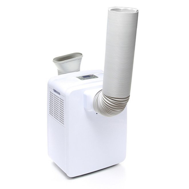 Rozwiązanie wykorzystuje rurę wylotową odprowadzającą gorące powietrze. Jest to standardowy i najbardziej powszechny sposób instalacji klimatyzatora przenośnego. Powietrze do schładzania pobierane jest z pomieszczenia w którym stoi urządzenie, a następnie wydmuchiwane do pomieszczenia. Powietrze procesowe jest również pobierane z pomieszczenia, a po ogrzaniu wydmuchiwane jest na zewnątrz rurą wylotową. Jest to wygodny sposób korzystania z klimatyzatora przenośnego zapewniający efektywną pracę urządzenia. Dodatkową zaletą jest prostota instalacji, wystarczy tylko poprawnie wystawić rurę odprowadzającą gorące powietrze na zewnątrz, na przykład za pomocą uszczelnienia okiennego, adaptora okiennego, lub kratki wentylacyjnej. Następnie podłączamy urządzenie do prądu i już po chwili możemy cieszyć się chłodnym i orzeźwiającym powietrzem w pomieszczeniu.