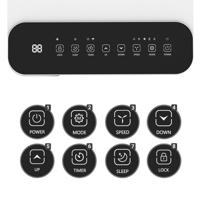 Sterowanie Climative MINI jest intuicyjne i przyjemne, dzięki zastosowaniu kolorowych przycisków dotykowych. Nazwa "MINI" idealnie oddaje jego filozofię - maksymalna funkcjonalność w minimalnym rozmiarze, przy czym urządzenie to oferuje więcej niż tylko chłodzenie. Dzięki kompaktowym wymiarom, Climative MINI jest idealnym rozwiązaniem dla mniejszych przestrzeni, skutecznie chłodząc pomieszczenia do 26 m², co sprawia, że jest doskonałym wyborem zarówno do użytku domowego, jak i komercyjnego.