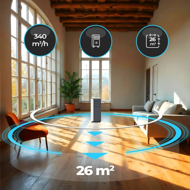 Climative AC26-S MINI to kwintesencja innowacji, skompilowana w kompaktowej formie, która nie ustępuje większym odpowiednikom pod względem wydajności. Zbudowany z wysokiej jakości komponentów, gwarantuje długotrwałą trwałość i bezawaryjność, co czyni go niezastąpionym towarzyszem podczas upalnych dni. Jego eleganckie, matowe wykończenie nadaje urządzeniu nowoczesny i stylowy wygląd, który doskonale komponuje się z każdym wnętrzem.
