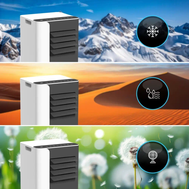 - Kompaktowe urządzenie chłodząco-osuszające z WiFi i aplikacją Smart Life. Zapewnia wydajne chłodzenie i osuszanie powietrza w pomieszczeniach do 26 m². Idealne do domu, biura i małych przestrzeni. 3 tryby pracy, sterowanie smartfonem, mobilność.