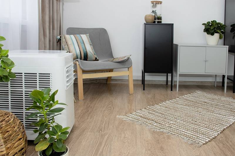 Instalacja klimatyzatora przenośnego wewnątrz schładzanego pomieszczenia