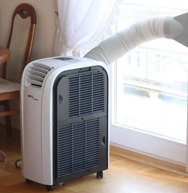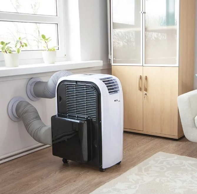 Instalacja klimatyzatora przenośnego wewnątrz schładzanego pomieszczenia
