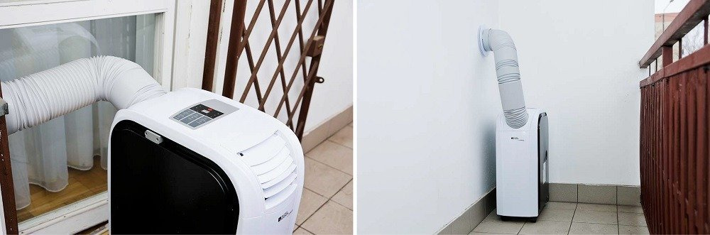 Instalacja klimatyzatora przenośnego na zewnątrz schładzanego pomieszczenia