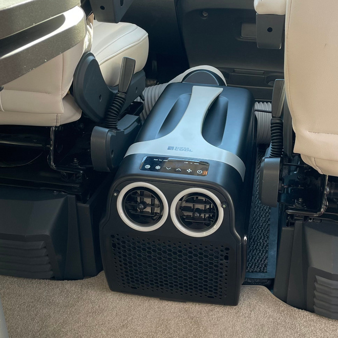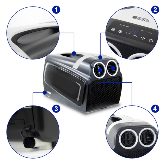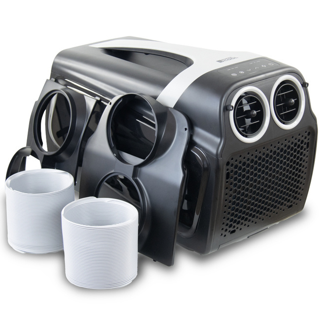 Zaprojektowany z myślą o użytkownikach ceniących mobilność i niezawodność. Jego kompaktowe rozmiary i wydajność sprawiają, że jest to idealne rozwiązanie do chłodzenia przestrzeni w kamperach, przyczepach campingowych i namiotach. Adaptery obiegu powietrza, w tym przedni dla zimnego powietrza i tylny dla gorącego, umożliwiają efektywną pracę urządzenia, maksymalizując komfort termiczny wewnątrz.