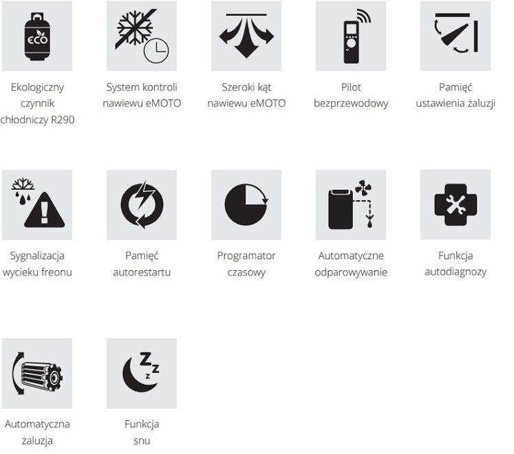 Zakres pracy - chłodzenie: 17 - 35ºC