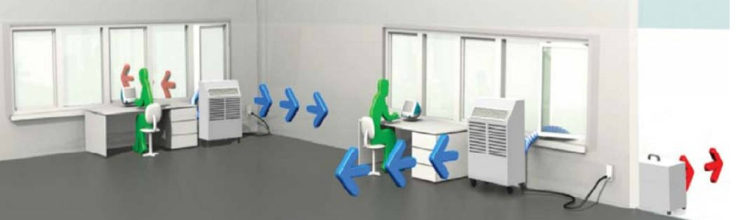 • inne duże pomieszczenia gdzie nie można stosować klimatyzatorów stacjonarnych.