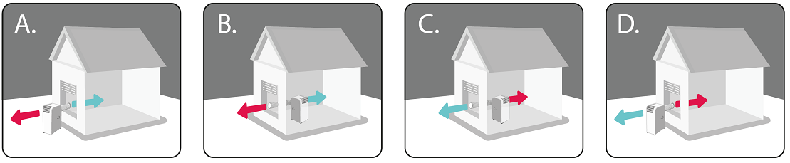 Klimatyzator może być umieszczony poza pomieszczeniem (np. na balkonie), co pozwala na jeszcze wydajniejszą pracę oraz zminimalizowanie poziomu dźwięku generowanego przez urządzenie. Należy pamiętać, aby nie narażać urządzenia na bezpośrednie i intensywne oddziaływanie warunków atmosferycznych, np. działanie promieni słonecznych lub ulewnego deszczu. Urządzenie należy wystawiać na zadaszonym tarasie, balkonie lub innym krytym miejscu, w celu uniknięcia jego awarii.