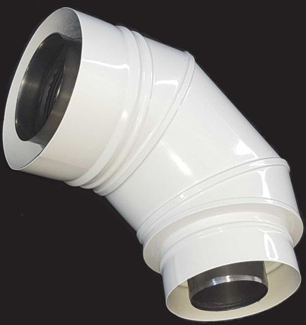 Kolano przyłączeniowe do kotła, Kolor biały. Kolano przeznaczone pod adapter z tworzywa na kotle,
