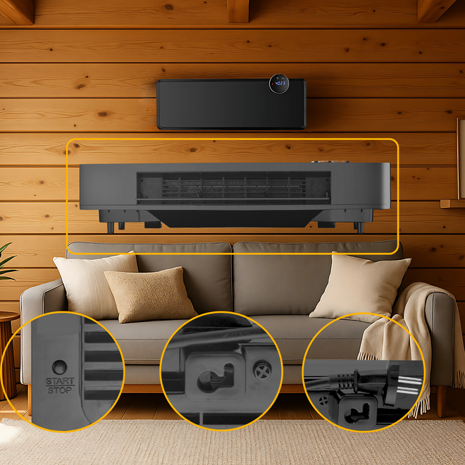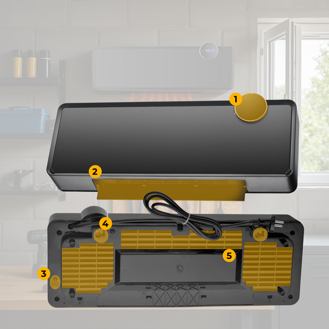✔️ Grzałka ceramiczna PTC – bezpieczna, trwała i energooszczędna, zapewnia równomierne ciepło.