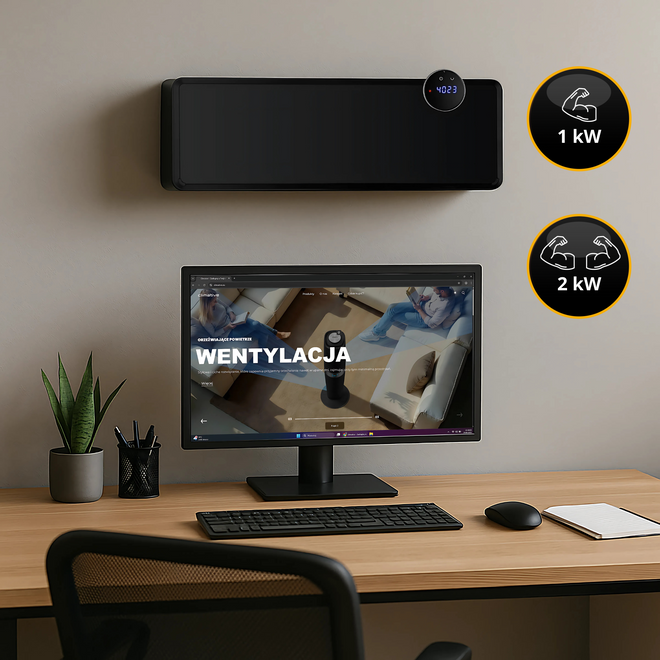 ✔️ Dwa tryby grzania (1000W / 2000W) – sam dopasowujesz poziom mocy do swoich potrzeb.
