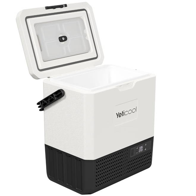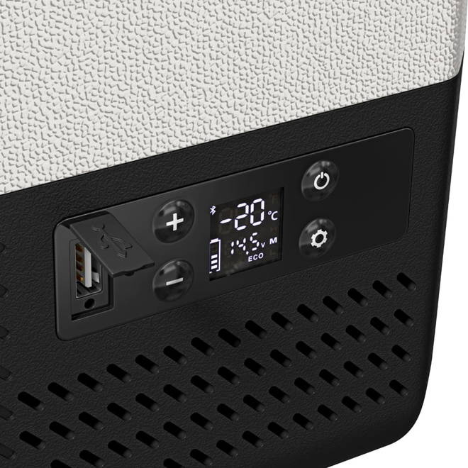 Lodówka może byćzasilania prądem stałym (12/24V) lub zmiennym (100-240V), Posiada wielopoziomowe zabezpieczenie akumulatora pojazdu przed rozładowaniem oraz zabezpieczenie przeciwprzepięciowe chroniące przed nagłymi skokami napięcia w sieci elektrycznej. Sloty baterii modułowej umożliwiają montaż do dwóch baterii jednocześnie. Baterie sprzedawane oddzielnie. Dwie baterie o pojemności 15600mah każda pozwalają na utrzymanie temperatury wewnątrz urządzenia do 16 godzin (pełna komora - 5°C/41°F przy temperaturze otoczenia 25°C/77°F). Panel sterowania z czytelnym ekranem ciekłokrystalicznym umożliwi Ci intuicyjne sterowanie urządzeniem. Lodówka turystyczna służy do schładzania artykułów spożywczych. Dzięki wysokiej klasy izolacji oraz wydajnemu kompresorowi proces chłodzenia przebiega wyjątkowo szybko.