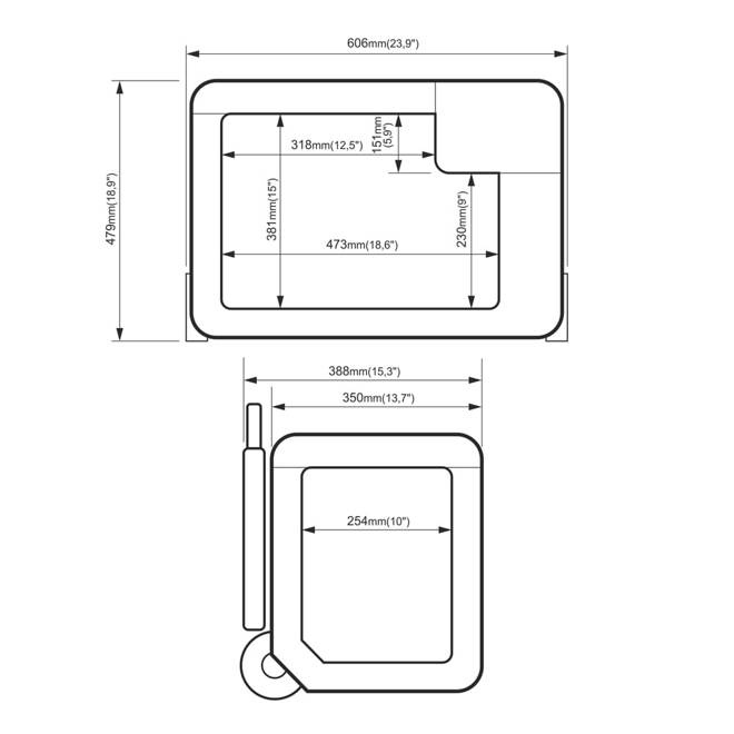 - Lodówka turystyczna Yolco BCX40 CARBON posiada pokrywę antypoślizgową z miejscem na butelki lub szklanki.