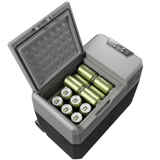 - Lodówka kompresorowa Yolco BCX40 GREY – chłodzenie i mrożenie do -20°C, 39 l pojemności, zasilanie AC/DC, Bluetooth, USB i panel LCD. Doskonała do kampera!