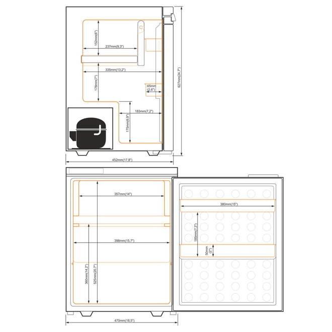 - Lodówka kompresorowa Yolco KL65 o pojemności 59 litrów