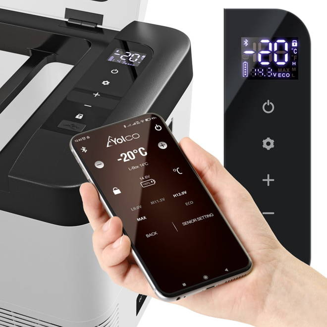 Lodówka może być zasilania prądem stałym (12/24V) lub zmiennym (100-240V). Posiada wielopoziomowe zabezpieczenie akumulatora pojazdu przed rozładowaniem oraz zabezpieczenie przeciwprzepięciowe chroniące przed nagłymi skokami napięcia w sieci elektrycznej. Lodówka kompresorowa Yolco posiada możliwość podłączenia zewnętrznej baterii zasilającej (do kupienia osobno). Panel sterowania z czytelnym ekranem ciekłokrystalicznym umożliwi Ci intuicyjne sterowanie urządzeniem. Dwie komory chłodzące o łącznej pojemności 26 l umożliwiają przechowywanie większych zapasów żywności czy innych produktów wymagających chłodzenia. Lodówka posiada ergonomiczne uchwyty, dzięki którym w łatwy sposób możesz ją przetransportować.