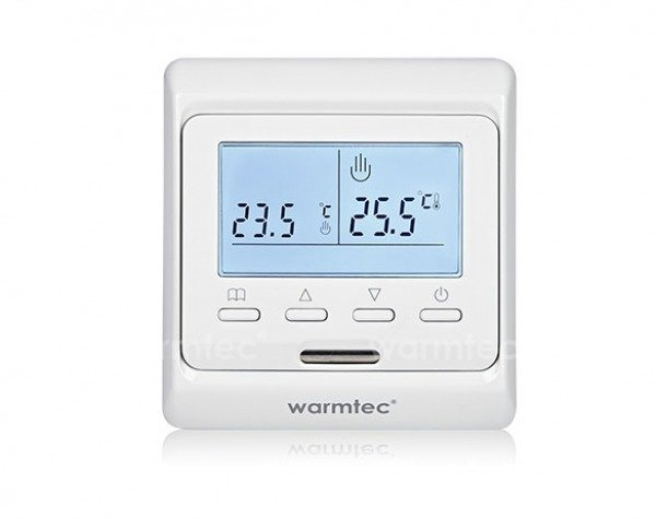 Kompletny zestaw elektrycznego ogrzewania podłogowego firmy Warmtec. Programowalny regulator temperatury z dużym, czytelnym wyświetlaczem LCD. Jednostronnie zasilana, samoprzylepna mata grzejna oraz ułatwiające montaż akcesoria.