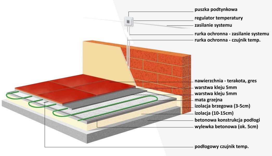 ✓ Mata grzewcza złożona jest z przewodu grzejnego przymocowanego do siatki wykonanej z włókna szklanego - ich łączna grubość wynosi zaledwie około 3,2 mm.