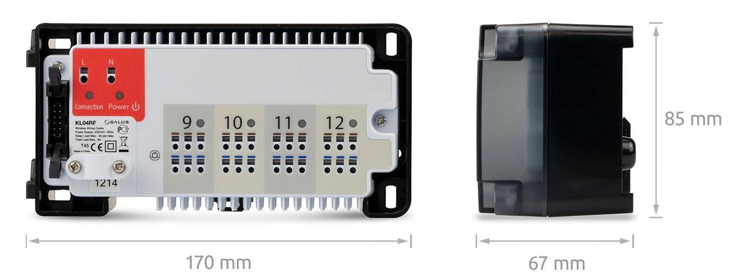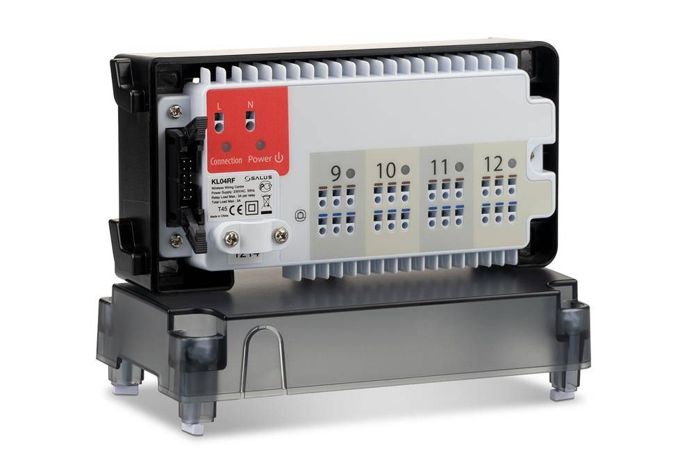 Moduł KL04RF jest rozszerzeniem do listwy KL08RF o kolejne 4 strefy. Działa tylko w połączeniu z listwą KL08RF - zwiększa jej możliwości do 12 indywidualnie sterowanych stref grzewczych.