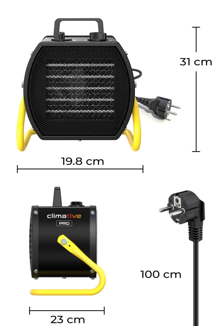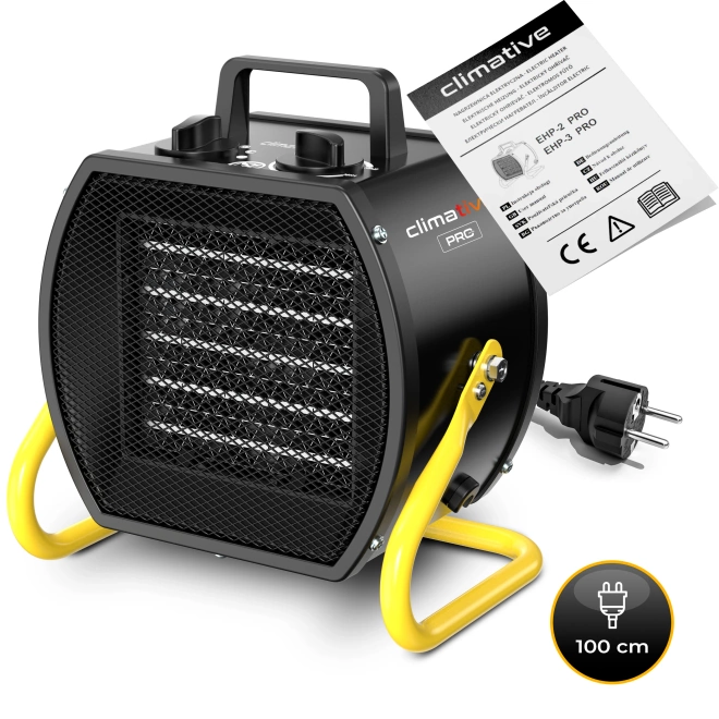 - Nagrzewnica elektryczna Climative PTC EHP-3 PRO o mocy 3,0 kW skutecznie ogrzewa pomieszczenia do 30 m². Posiada grzałkę PTC, regulowany termostat, różne tryby pracy oraz metalową obudowę serii PRO.