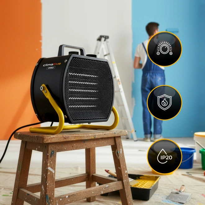 🔵 Remonty i prace wykończeniowe – natychmiastowe źródło ciepła, przyspieszające wysychanie farb, tynków i innych materiałów.