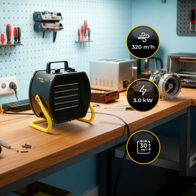 🔵 Moc 3,0 kW – efektywnie ogrzewa pomieszczenia do 30 m², idealna do biura, garażu lub domku letniskowego.