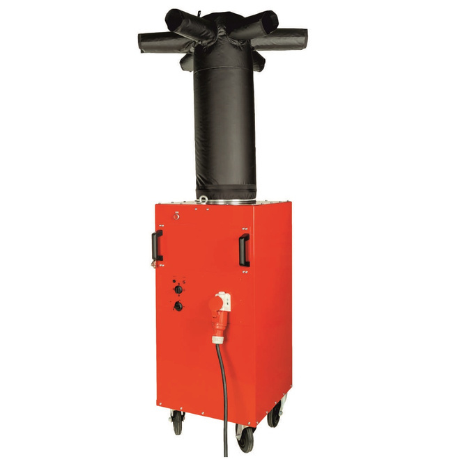 Innowacyjne urządzenie wyposażone w system wielokierunkowej dystrybucji ciepłego powietrza. Zastosowane rozwiązanie zapewnia równomierne ogrzewanie popomieszczenia. Filtr oczyszczający powietrze umożliwia zastosowanie urządzenia w pomieszczeniach, w których występuje zapylenie. Sczególnie polecana jest do ogrzewania pomieszczeń w trakcie budowy, a także takich, w których trwają prace wykończeniowe. W celu ułatwienia przemieszczania wyposażona została w koła jezdne i uchwyty transportowe. Przeznaczona jest do ogrzewania średnich, dużych i największych kubaturowo pomieszczeń: