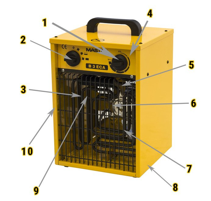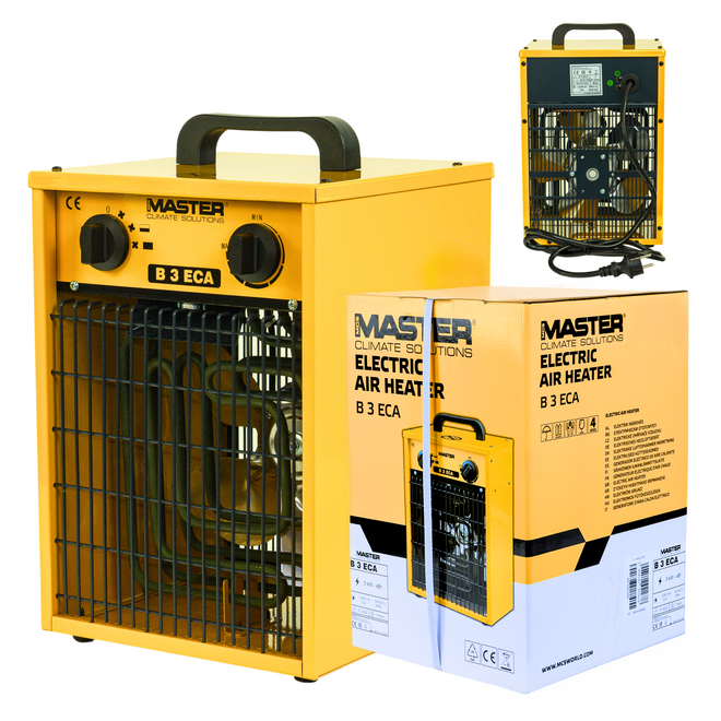 Nagrzewnica elektryczna Master B 3 ECA to bardzo efektywne urządzenie wykorzystywane w najróżniejszych warunkach. Zapewnia czyste, efektywne i bezpieczne ogrzewanie. Ze względu na to, że jest w pełni przenośne i łatwe w obsłudze świetnie nadaje się do okazjonalnego, bądź awaryjnego ogrzewania pomieszczeń. Nagrzewnice elektryczne Master są wykonane z najwyższej jakości materiałów, które zapewniają niezawodność i wydajność tych urządzeń. Zimne powietrze jest zasysane do urządzenia przez wentylator i kierowane w stronę wylotu nagrzewnicy, gdzie ogrzewane jest przez wysokiej jakości grzałki. Ciepłe powietrze wylatuje przodem.