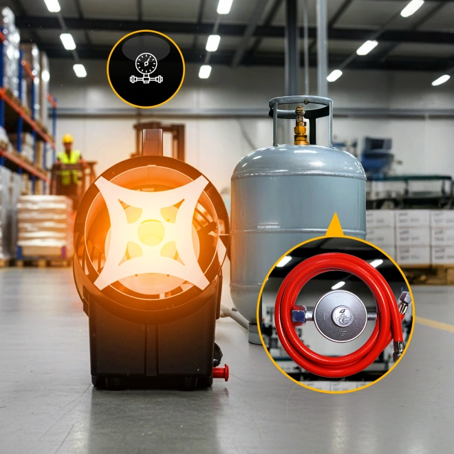 🔵 Kompletny zestaw – w standardzie przewód gazowy i reduktor, gotowe do natychmiastowego podłączenia.