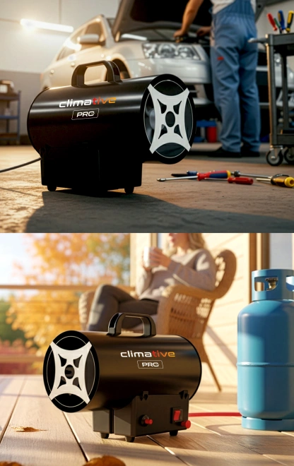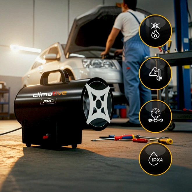 🔵 Warsztaty i garaże – błyskawicznie dogrzewa stanowiska pracy, zapewniając komfort cieplny nawet w niskich temperaturach.