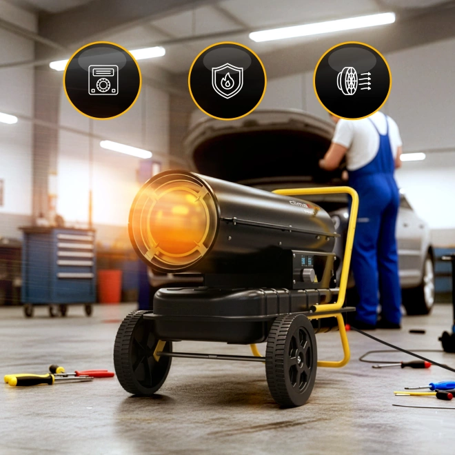 🔵 Garaże i serwisy samochodowe – umożliwia szybkie podniesienie temperatury, zwiększając komfort pracy mechaników i obsługi technicznej.