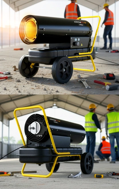 🔵 Place budowy – gwarantuje efektywne ogrzewanie pomieszczeń podczas prac montażowych, remontowych i wykończeniowych, niezależnie od pory roku.